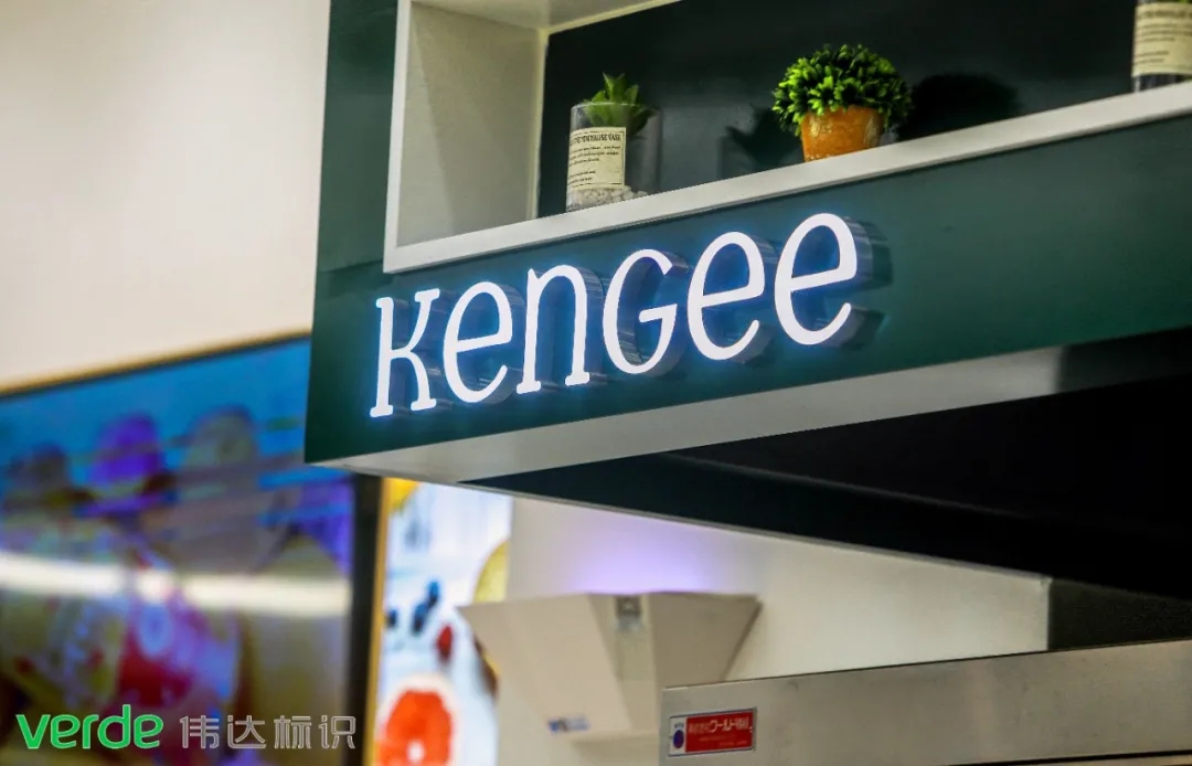 商場內(nèi)門店展示,綠色底色反襯出潔白發(fā)光字,讓品牌一目了然
