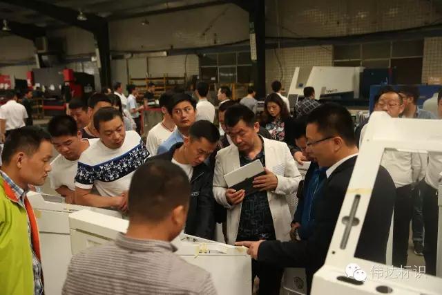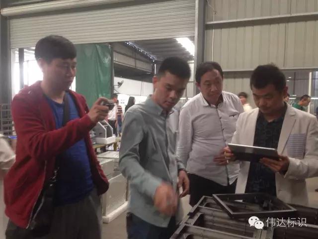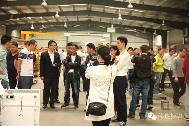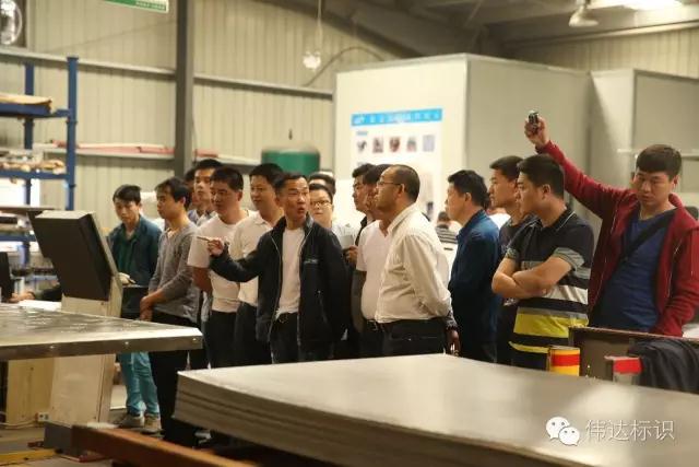 標(biāo)識(shí)協(xié)會(huì)的精英們在廠房內(nèi)近距離感受我公司高精度、高速度、高品質(zhì)的生產(chǎn)設(shè)備。