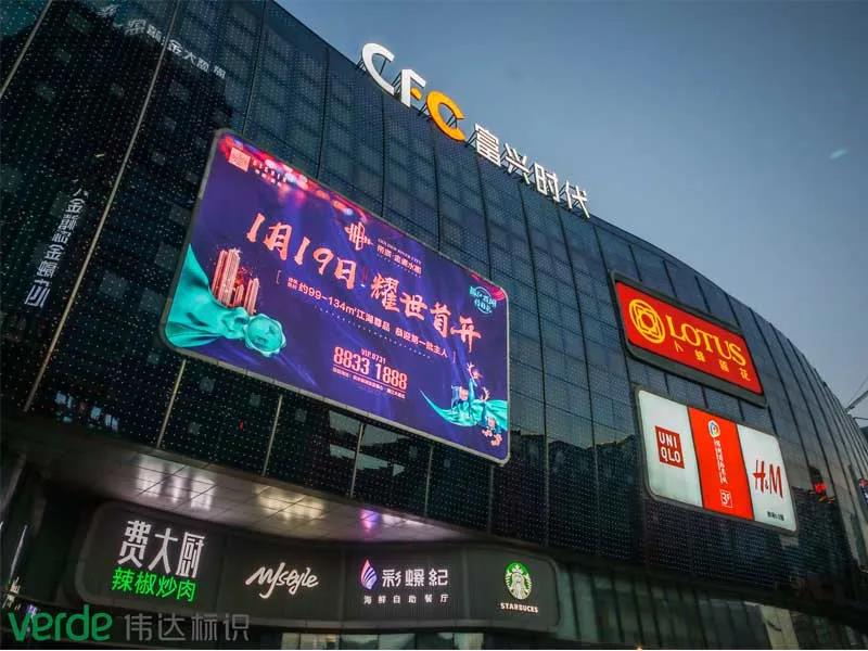 偉達(dá)標(biāo)識利用富興時(shí)代外墻上的標(biāo)識,來進(jìn)行形象表現(xiàn),既醒目又不突兀更與建筑外觀相協(xié)調(diào),尺寸適宜,風(fēng)格統(tǒng)一。